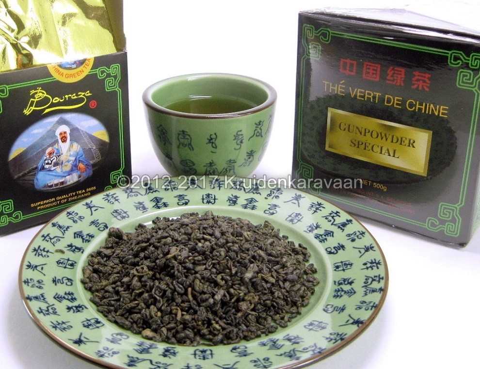 Chinese Gunpowder – ook wel parelthee of buskruit thee – wordt zo genoemd omdat de grijs-groene balletjes van de opgerolde bladeren lijken op buskruit en open springen in heet water.